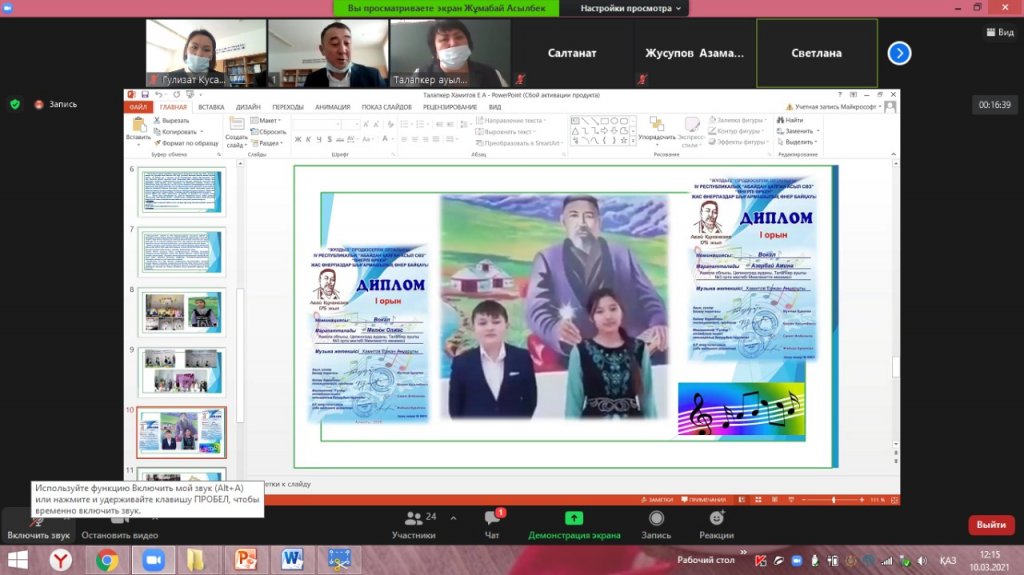 12 наурыз 2021 жылы Ақмола облысы білім басқармасының әдістемелік кабинетінің ұйымдастыруымен облыстық аймақтық онлайн семинар өтті.