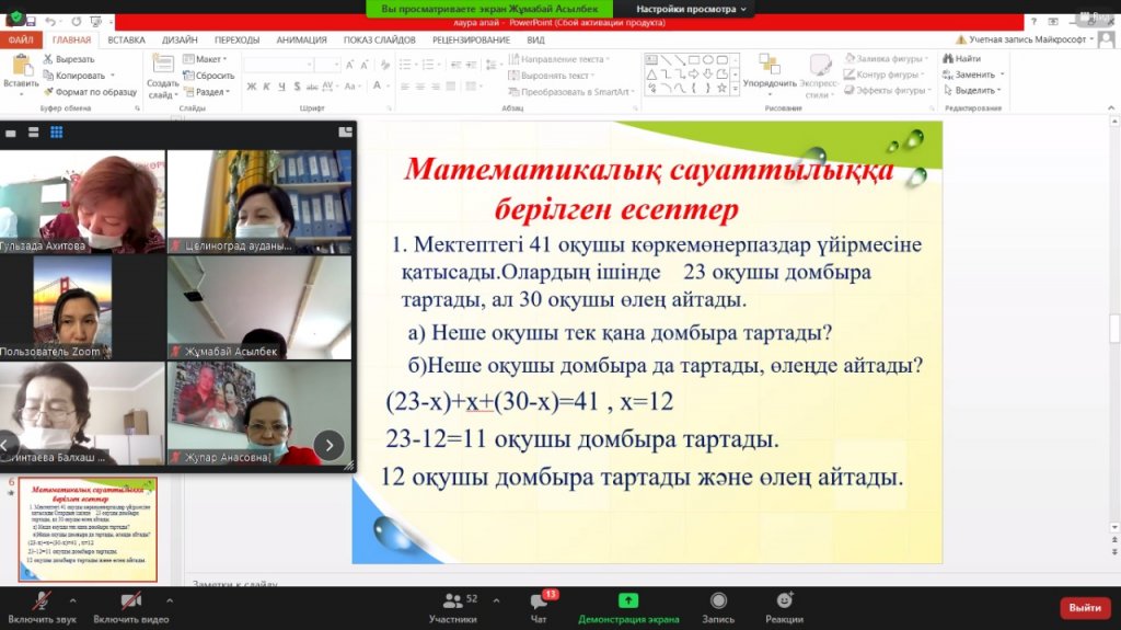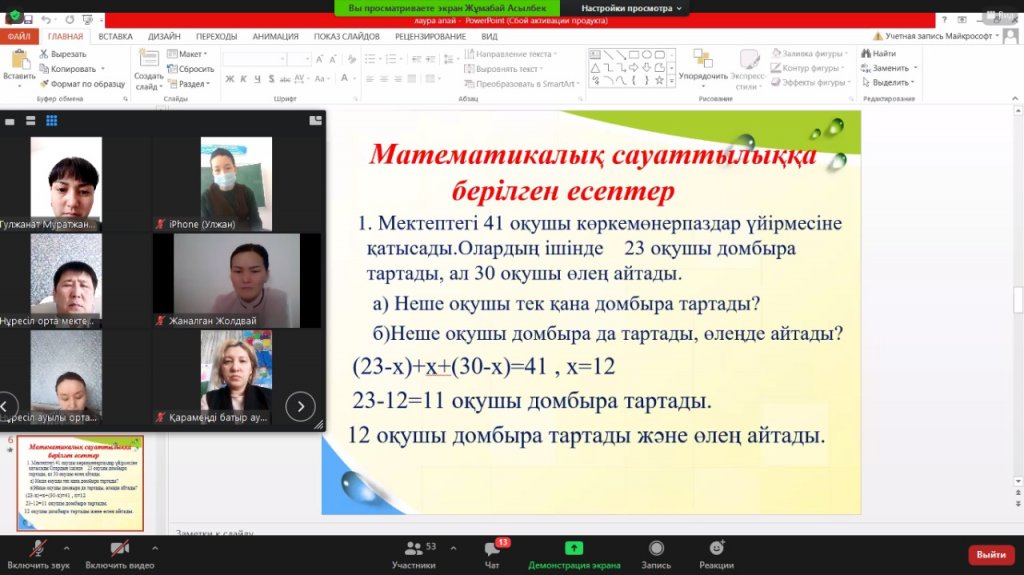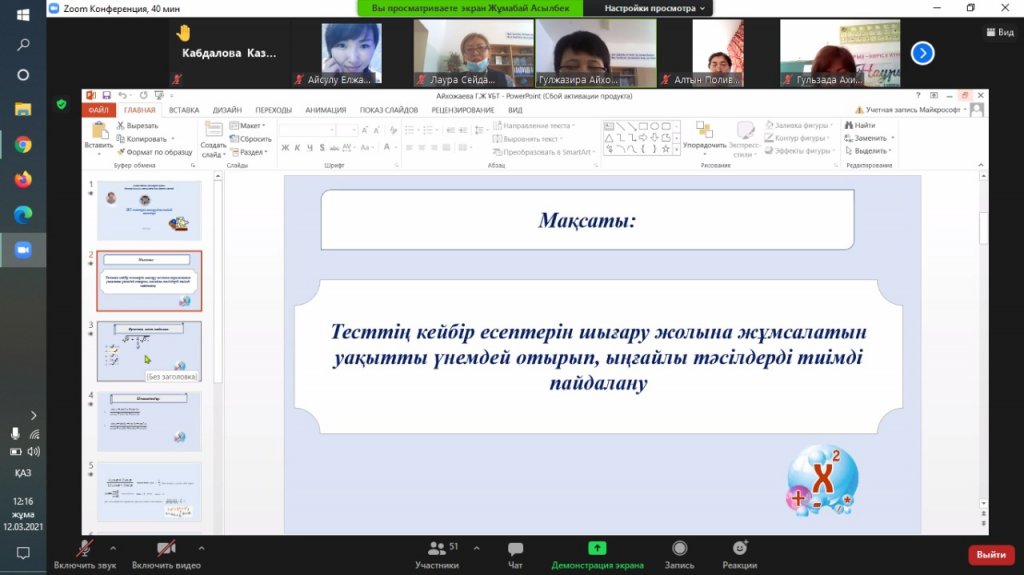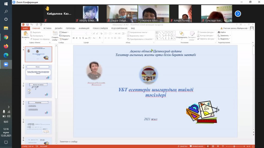 Бүгін, яғни 12.03.2021 күні мектебіміз математика пәні бойынша аудан көлемінде « ҰБТ -да кездесетін кейбір есептерді шығару жолдары» тақырыбындав вебинар өтті.Вебинарға аудан мектептерінен 52 мұғалім және аудандық білім бөлімінің әдіскерлері қатысты.