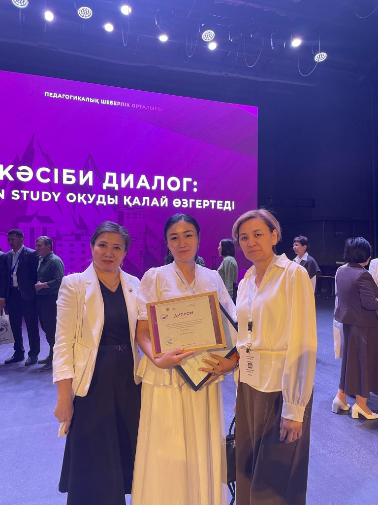 2025 жылдың сәуір айының 23-25 күндері Алматы қаласында Педагогикалық шеберлік орталығы мен “Назарбаев Зияткерлік мектептер”ДББҰ ұйымдастыруымен “Кәсіби диалог: Lesson Study оқуды қалай өзгертеді” халықаралық деңгейдегі ІІ Ұлттық конференциясы өтті. Конференцияға Ақмола облысынан төрт бағыт бойынша он бестей мұғалім қатысты. Конференция қорытындысында Ақмола обылыс Целиноград ауданы Жаңаесіл ауылының жалпы орта білім беретін мектебінің қазақ тілі мен әдебиеті пәнінің мұғалімі КЫЗЫР НАЗГУЛЬ “Постер көрмесінде” сабақты зерттеудің озық тәжірибесін ұсынғаны үшін жүлделі ІІ дәрежелі дипломмен МАРАПАТТАЛДЫ!