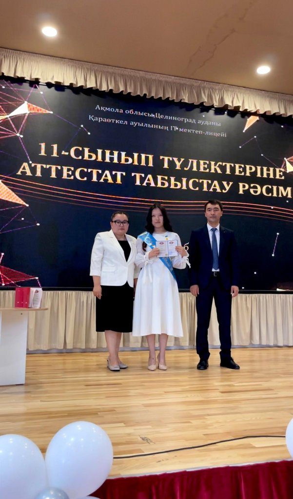 Қараөткел ауылының ІТ МЛ директоры Сағатова Алия Тлеубергеновна "Алтын белгі" 2025 түлек саны - 4, үздік аттестатқа - 5 және 79 мектеп бітірушіні, ата-аналарды балаларының мектептегі оқуын сәтті аяқтауларымен құттықтады.