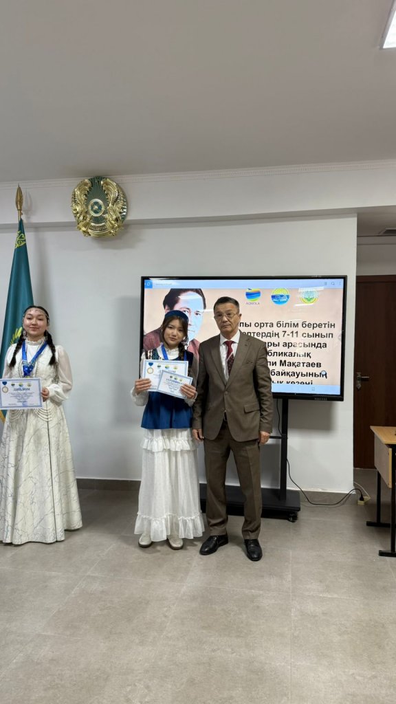 2 дәрежелі диплом «Заманның заңғар тұлғасы» бағыты бойынша Сауытжан Саян– Оразақ ауылының жалпы орта білім беретін мектебінің 8 сынып оқушысы жетекшісі Армина Бахыт;