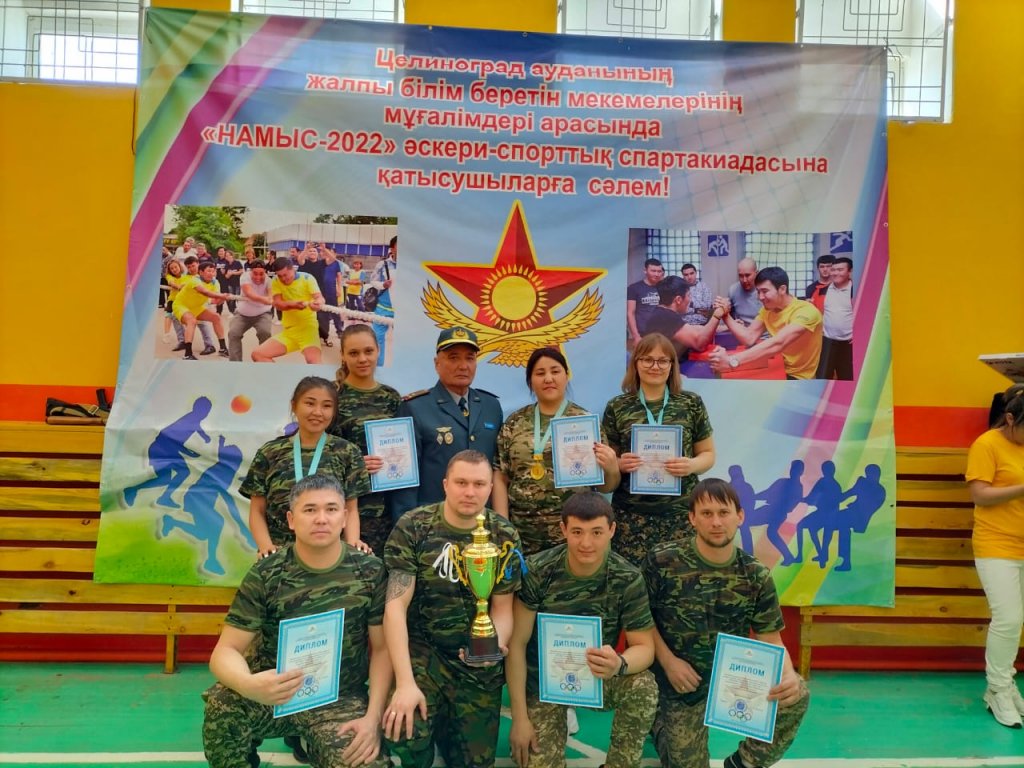 Целиноград ауданы білім бөлімі 2022 жылдың 16наурыз күні Целиноград ауданы білім қызметкерлерінің Кәсіподақ Кеңесінің төрағасы К.С.Сатбалдин демеушілігіменАқмол ауылындағы орта мектебінде мұғалімдер арасында әскери-спорттық Намыс-2022 ақтық сын спартакиадасын өткізді. Ақтық сын сайысына аудандық аумақтан жеңіп шыққан бірінші, екінші орын иеленген командалар Ақмол, Қараөткел №1, Қосшы №1, Қабанбай батыр, Родина, Төңкеріс, Ы.Алтынсарин және Талапкер орта мектептерінің ұстаздары қатысты. Жарыс номинациялары оқу-жаттығу АК-74 автоматын жартылай бұзу, жинау, пневматикалық винтовкадан нысанаға ату, қол күресі, жалпы дене жаттығуы: белтемірде тартылу, еденде қолды жазып, бүгу, командалық арқан тарту. Жарыс қорытындысы бойынша командалық 1-ші орынды Ақмол орта мектебі, 2-ші орынды Қабанбай батыр орта мектебі, 3-ші орынды Талапкер орта мектебі иеленді. Жекелей сында озық нәтиже көрсеткен Оспанова Венера Канатовна, Калдыбекова Линара,Жолдыбаев Нурболат, Байтикенова Гульдариға, Жорматов Айдос, Сапарғали Серік, Такенова Аяжан бағалы сыйлықтармен марапатталды. Көктемнің Әз-Наурыз мерекесімен құттықтаймыз және сіздерге зор денсаулық, жұмыста табыс және спортта жаңа шығармашылық жетістіктер тілейміз!