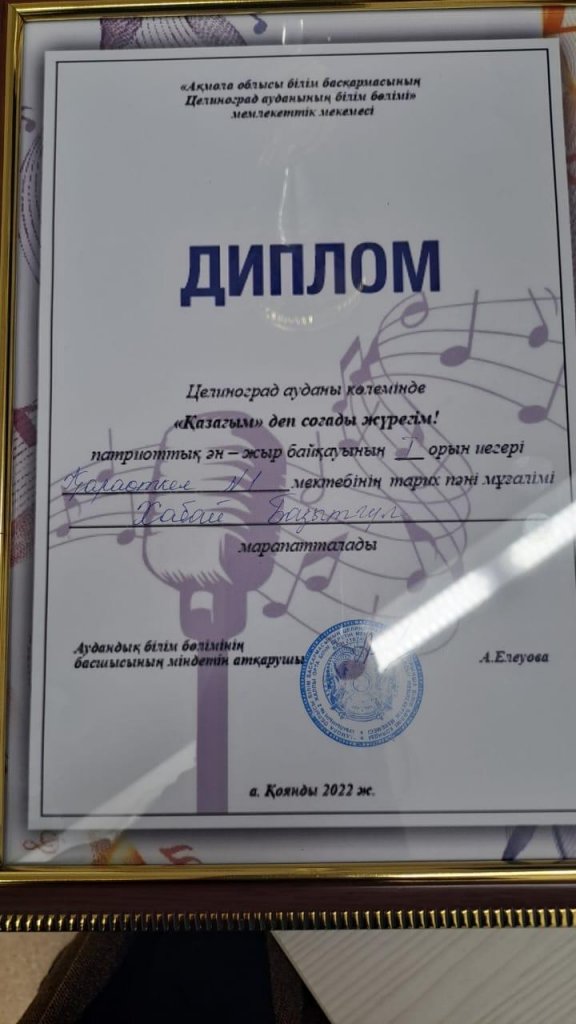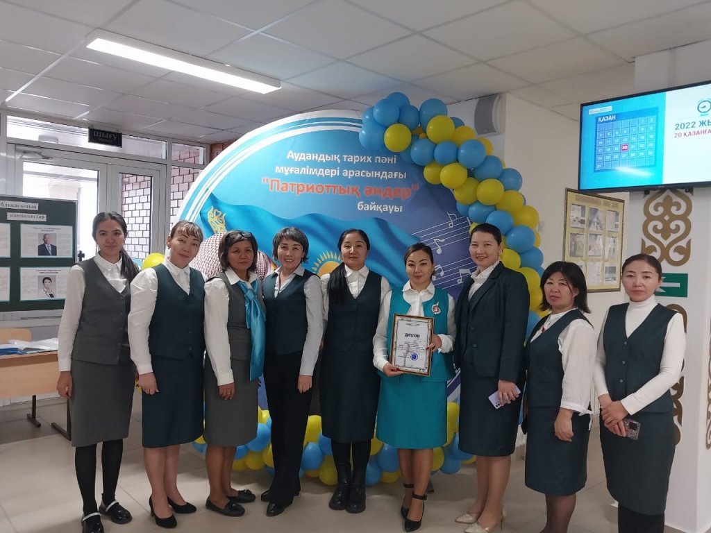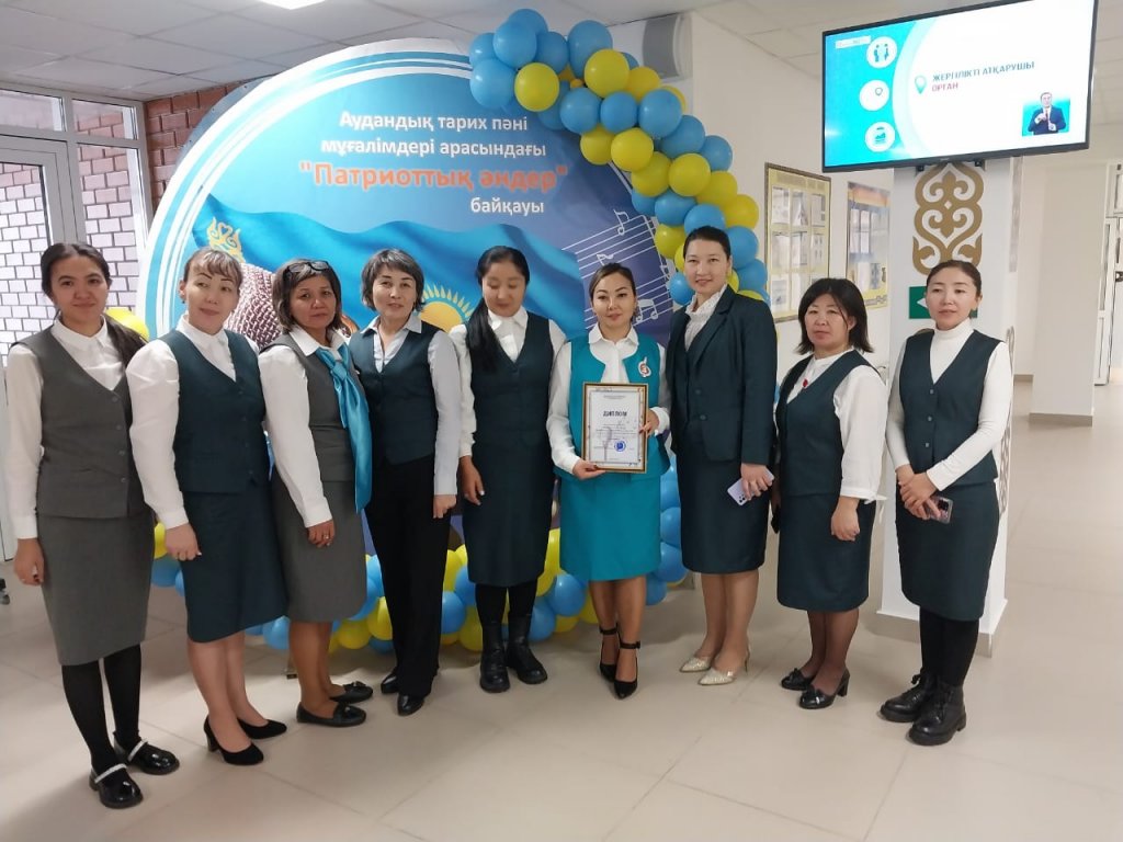 2 кезең – «Қазағым деп соғады жүрегім» / патриоттық ән – жыр/ Байқау қорытындысы бойынша жүлдегерлер қатарында бірінші орынды – Қараөткел ауылы №1 орта мектебі тарих пәні мұғалімі - Хабай Бақытгүл, екінші орынға - Қоянды ауылы №1 орта мектебі тарих пәні мұғалімі Цэрэг Назыра және Қоянды ауылы №2 орта тарих пәні мұғалімі - Рахам Силам, үшінші орынды Р.Қошқарбаев ауылы орта мектебі тарих пәні мұғалімі – Жургембаева Меруерт Құдайбергенова, Ынтымақ ауылы орта мектебі тарих пәні мұғалімі -