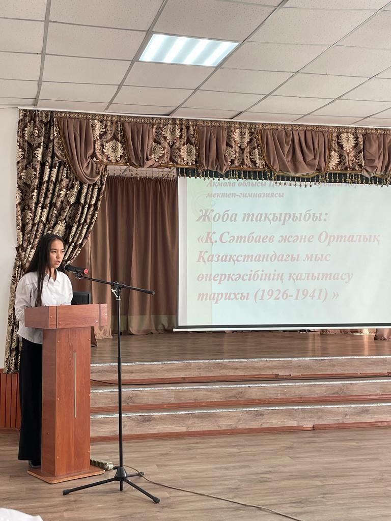 Аудан мектептерінен оқушылар Қ.И. Сәтбаевтың өмірі, еңбек жолы, ғылыми жаңалықтары және т.б. тақырыптарда ғылыми жобалар қорғады. Тұңғыш академиктің сан қыры ашылды. Қатысушы оқушылар өз жұмыстарын жоғары деңгейде көрсете алды.