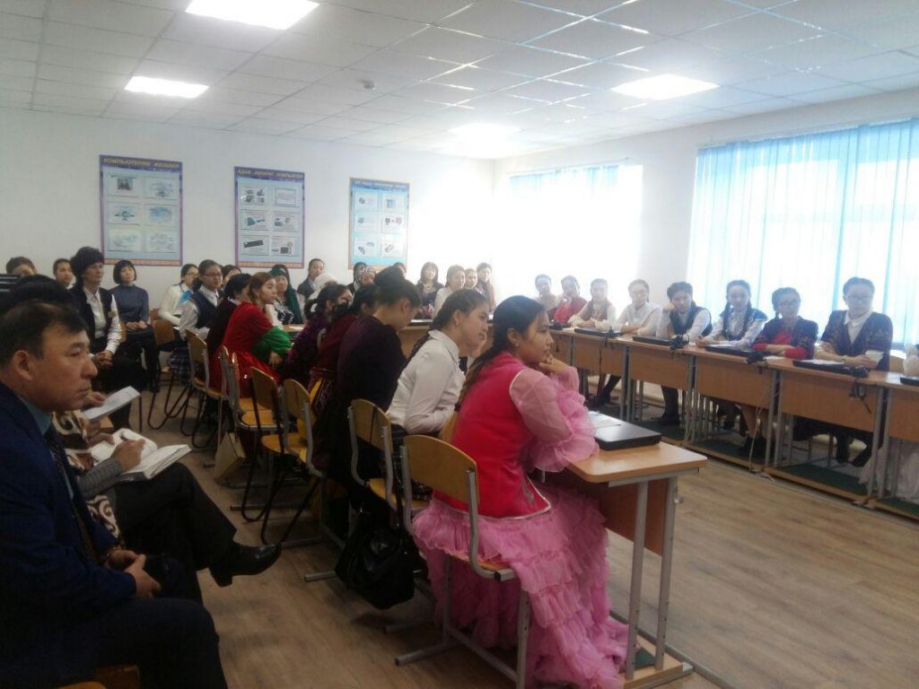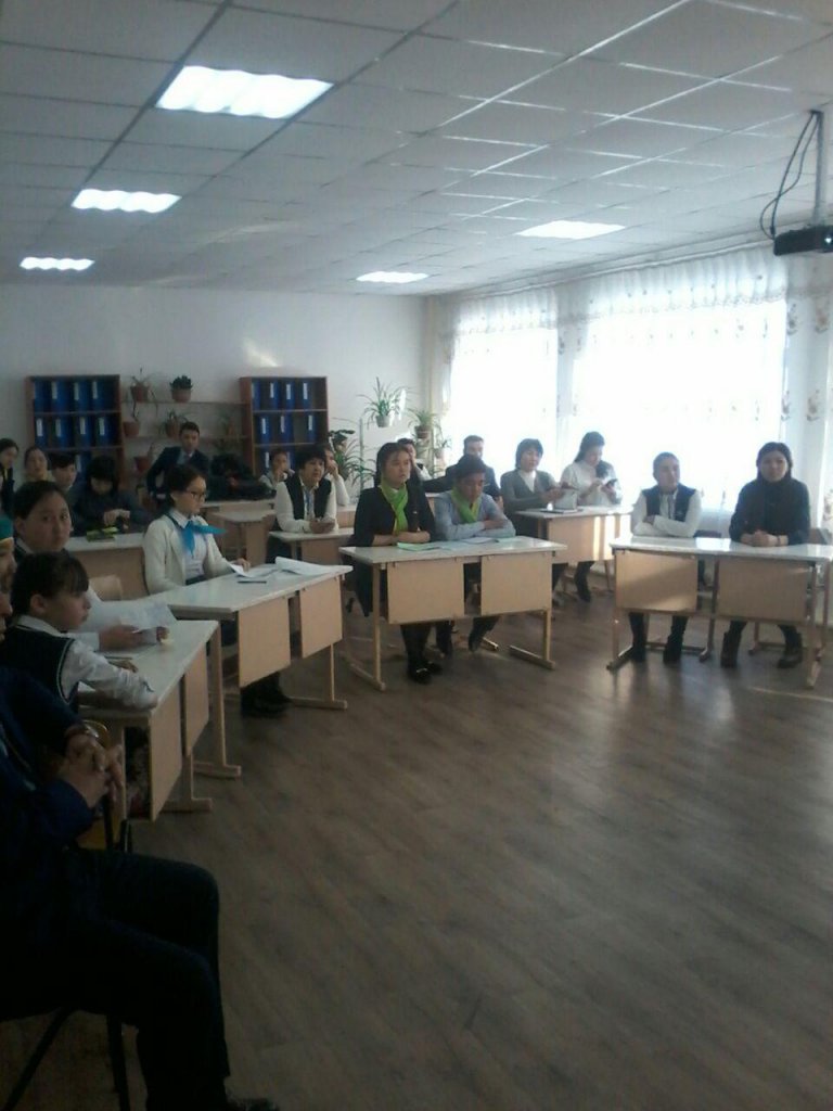 В школе собрались все детско-юношеские и волонтерские движение «Жас ұлан», клуб «Адал ұрпақ», волонтерское движение «Жалын», военно-спортивные команды «Самұрық», «Қыздар» клубы.