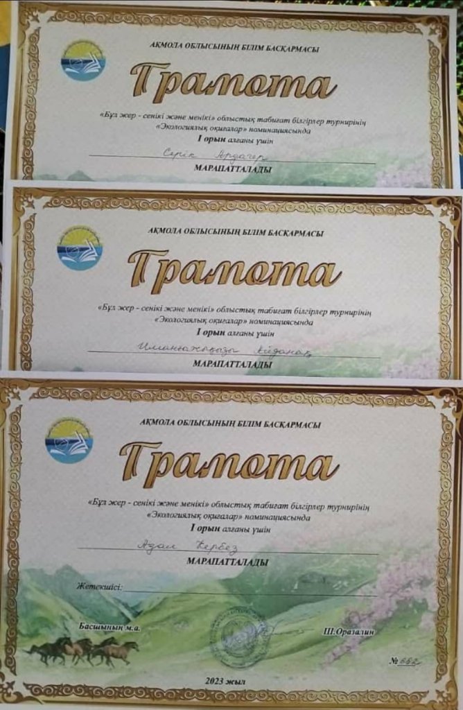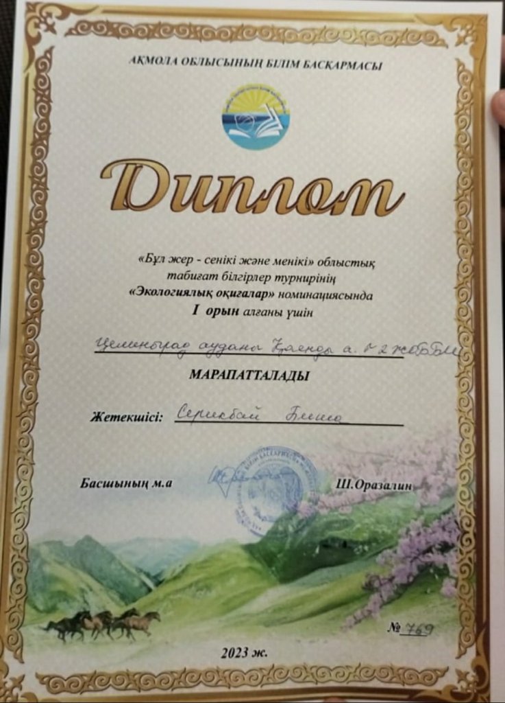 18-20 сәуір аралығында Ақмола облысының , Туризм және дене шынықтыру орталығының ұйымдастырылуымен өткен "Бұл жер - менікі және сенікі" атты табиғат білгірлері турниріне Қоянды №2 ЖОББ мектебі қатысып, "Экологиялық оқиғалар" номинациясынан I орынды жеңіп алды. Жетекшісі: Биология пәні ұстазы Серикбай Биша