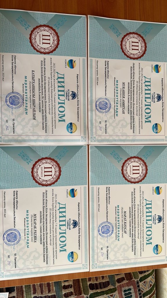 Мукашев Амирхан, ученик 8 класса общеобразовательной школы села Талапкер, занял 3 место по английский языку на областном этапе республиканской олимпиады по общеобразовательным предметам для 7-8 классов.