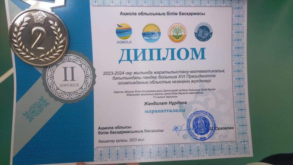 2023 жылдың 02-04 қазан арлығында Сандықтау ауданы, Балкашин ауылында 11-сынып оқушыларына арналған жаратылыстану-математикалық бағыттағы пәндер бойынша Президенттік олимпиадасының облыстық кезіңінде Жанболат Нұрдана – Жарлыкөл ауылының жалпы орта білім беретін мектебінің 11сынып оқушысы жүлделі 2-орын және Арсекеев Ернар – Төңкеріс ауылының жалпы орта білім беретін мектебінің 11сынып оқушысы жүлделі 2-орын иеленді.