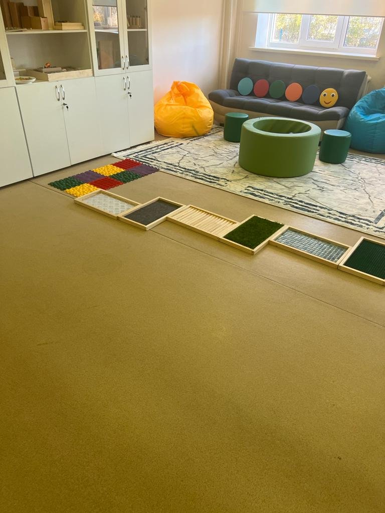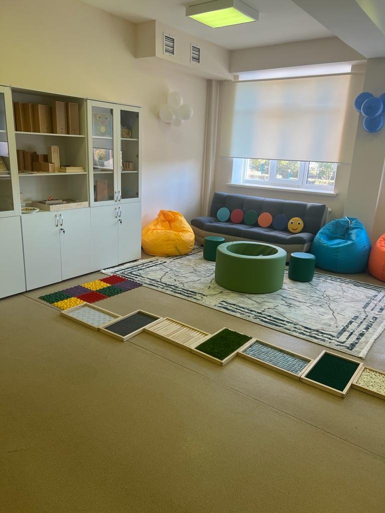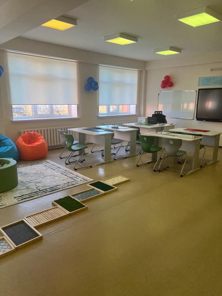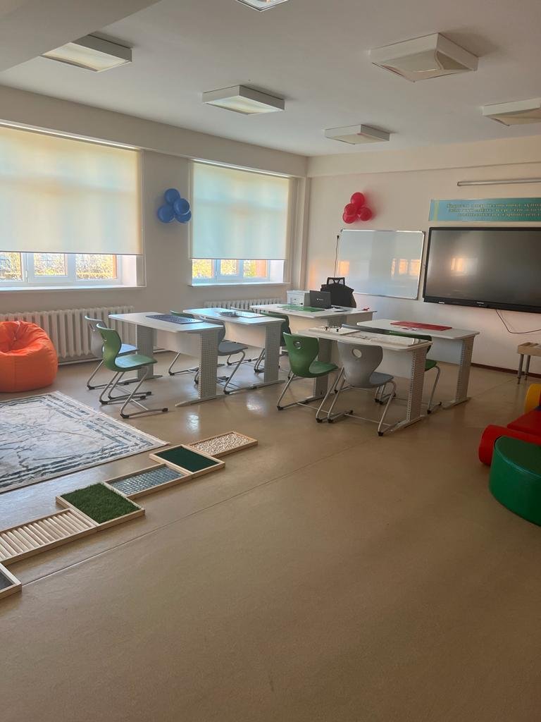 Кабинет оқушылардың оқып-дамуына мүмкіндік беретін монтессори, интерактивті тақта, аяқ-қол моторикасы үшін түрлі заттар, демалыс бұрышы, психологиялық сүйемелдеу бұрышы, логопед-дефектолог жұмысы үшін жабдықтар, дидактикалық ойындармен жабдықталған.