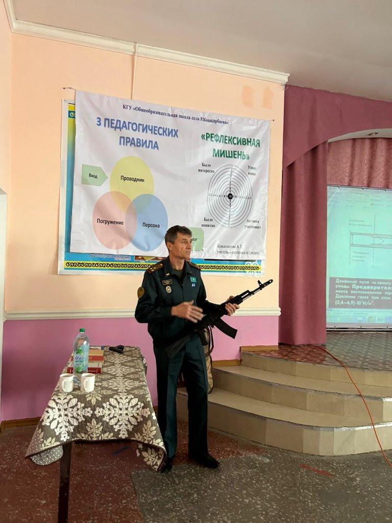 Оған ауданаудан мектептерінен 33 әскери жетекші қатысты. Мектептің алғашқы әскери және технологиялық дайындық пән мұғалімі Кузнецов Сергей Александрович «Мылтық ату негіздері мен ережелері» тақырыбында әдістемелік сабақ көрсетті.