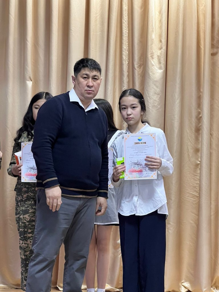 3 сәуір мен 5 сәуір аралығында Демократиялық Ауғанстан Республикасынан шектеулі контингент әскерінің шығарылғанына 35 жыл толуына арналған Сандықтау ауданында "Жас дәурен" балаларды сауықтыру кешенінде ұйымдастырылған облыстық жас тарихшылар мен өлкетанушылардың зерттеу жұмысы конкурсына Целиноград ауданы бойынша 4 оқушы қатысып төмендегідей нәтижеге қол жеткізді.